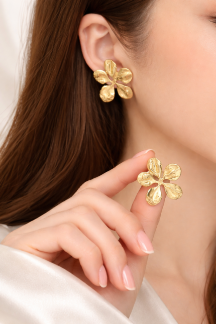 Golden Petal Statement Earrings